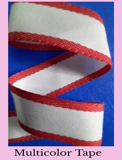 We can make Multi-Color tapes in different combination of color, design and weave. It can be make in Polyester as well as Cotton as per customers need Subject to MOQ. Our Multicolor tapes are used for branding and accessorising their products.